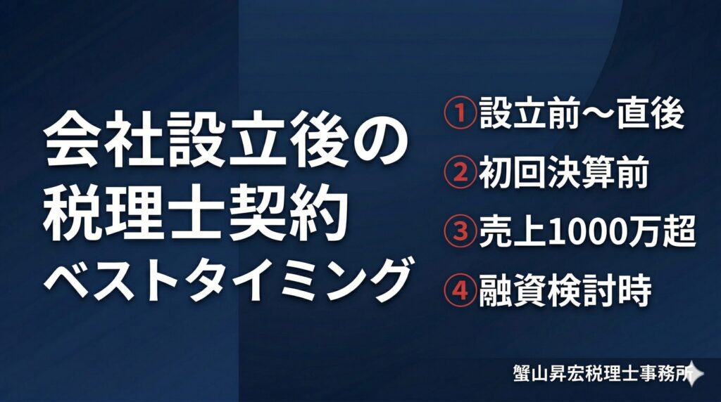 なお、顧問税理士の費用感を先に知っておきたい方は「顧問税理士の費用相場を大阪で徹底調査」をご覧ください。設立直後は特にコストが気になるはずです。